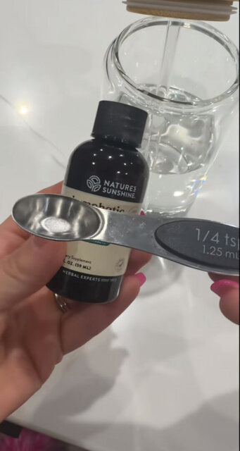 1/4 de cucharadita al día (≈ 1 a 2 ml) es suficiente para activar el drenaje y reactivar tu sistema linfático.