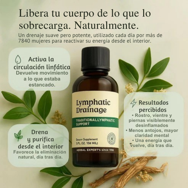 Cuando el sistema linfático va más lento, los fluidos se acumulan. Resultado: rostro hinchado, vientre tenso, piernas pesadas, fatiga. Las soluciones clásicas alivian, pero solo en la superficie. Nuestra fórmula, en cambio, actúa directamente en la raíz del problema.