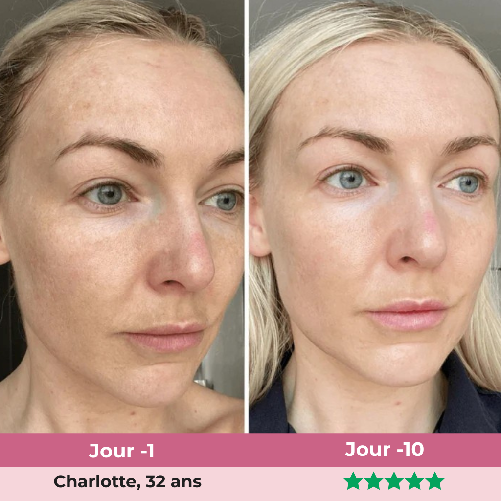 En 2 à 3 semaines, 90 % de nos clientes constatent une peau plus ferme et plus uniforme.